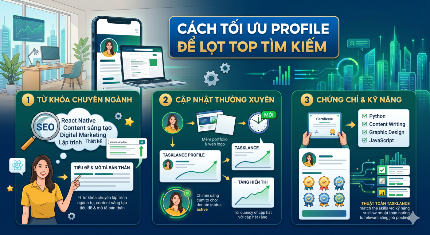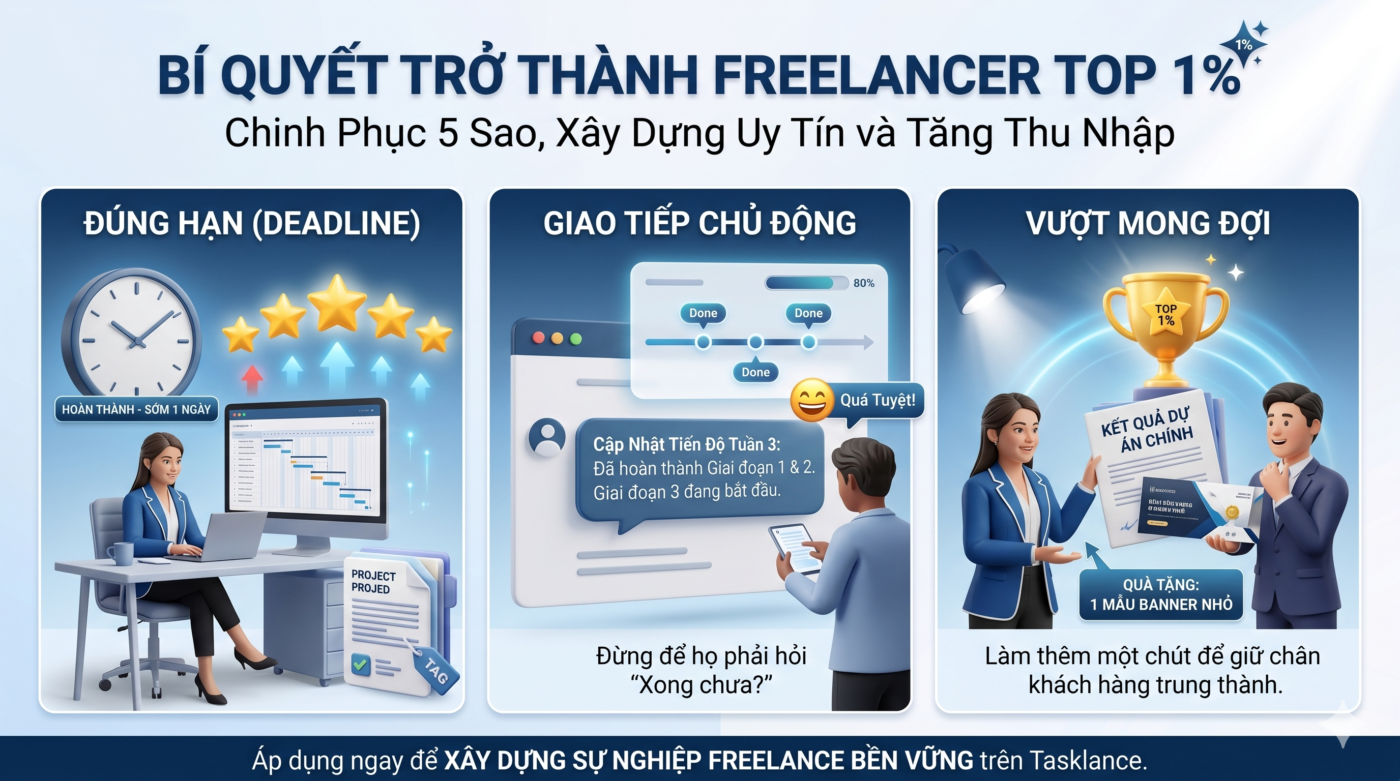 Làm việc chăm chỉ là tốt, nhưng để X2 thu nhập trên Tasklance, bạn cần tư duy như một Freelancer chuyên nghiệp. Hãy áp dụng ngay 3 chiến thuật “vàng” sau đây: 1. Chuyên Môn Hóa: “Sâu” Hơn Để Giá Trị “Cao” Hơn Đừng là người làm tất cả mọi thứ, hãy là người giỏi […]