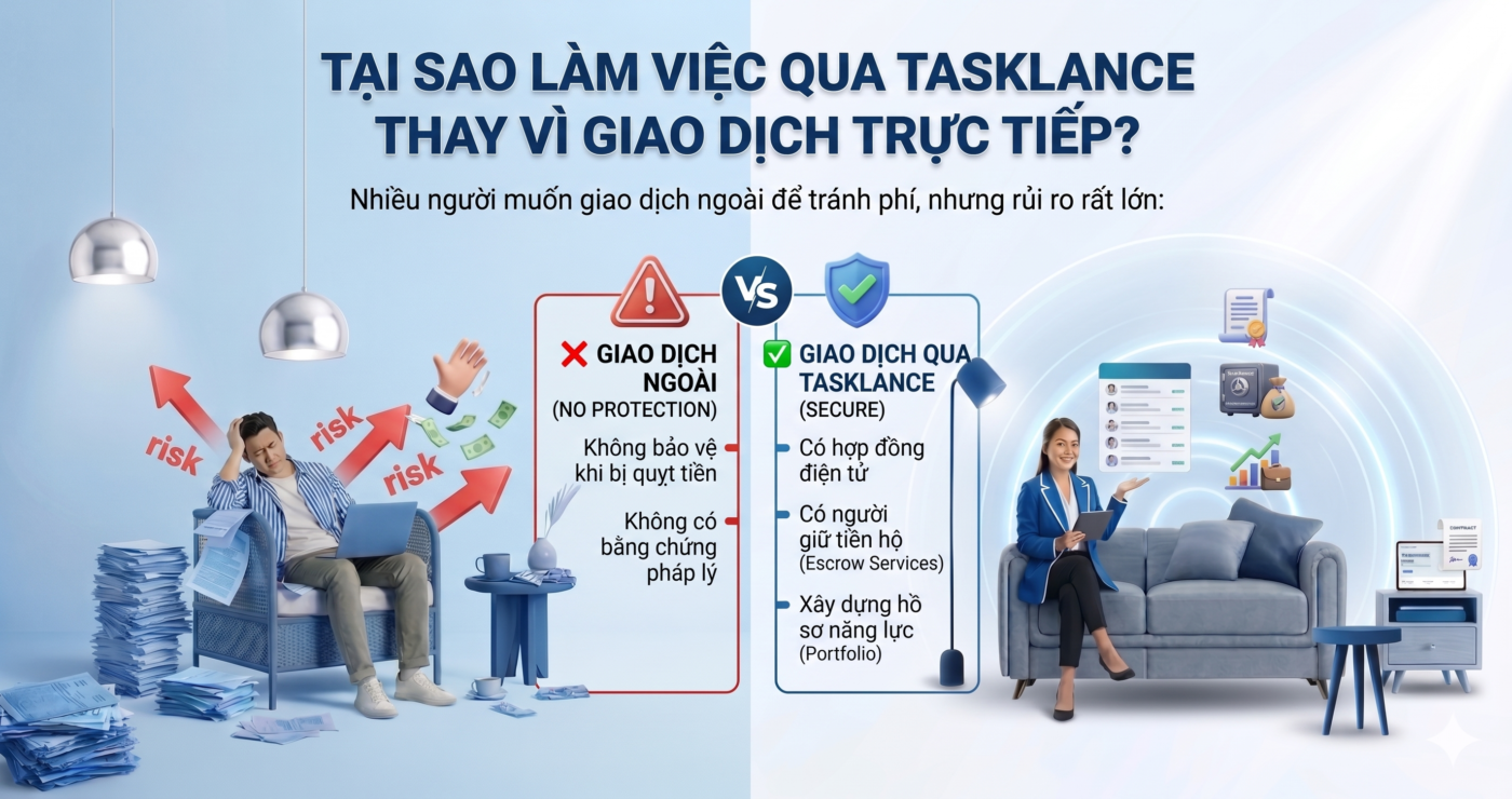 Tasklance là sàn giao dịch trung gian giúp kết nối cộng đồng Freelancer tài năng với các Nhà tuyển dụng uy tín. Chúng tôi mang đến giải pháp làm việc từ xa hiệu quả, minh bạch và chuyên nghiệp. 1. Dành cho Freelancer (Người làm tự do) 2. Dành cho Khách hàng (Nhà tuyển dụng) […]